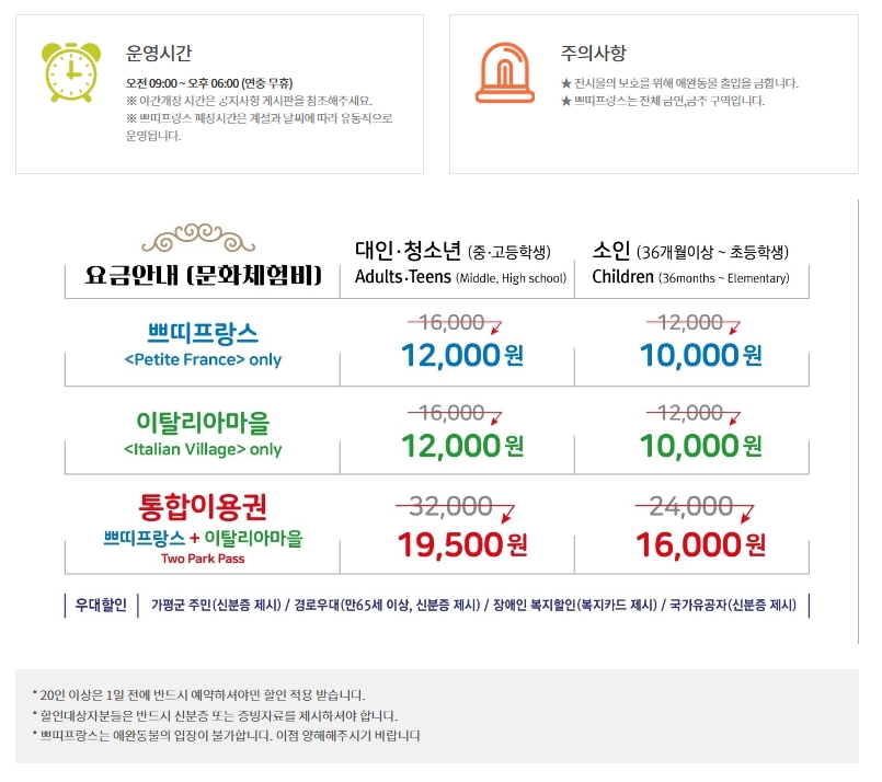 쁘띠프랑스&이탈리아마을 15주년 특별 할인 입장권