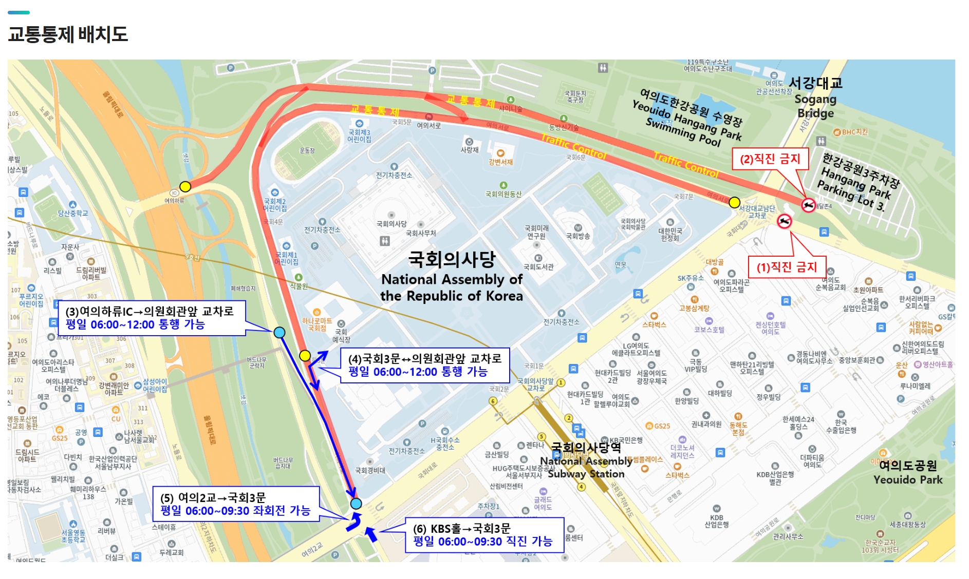 - 9호선 국회의사당역 1, 6번 출구 → 도보 5분