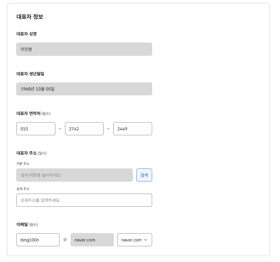 • 기존 등록 정보 확인 후, 변경된 주소 정보 입력