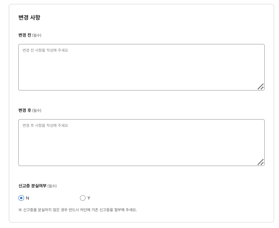 • 변경된 사업자등록증 사본(PDF) 첨부