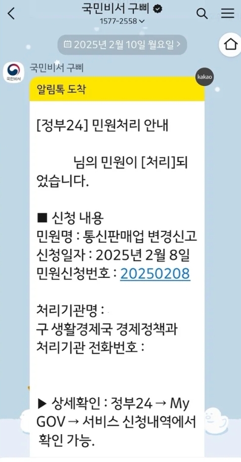 "통신판매업 변경신고가 완료되었습니다"라는 문자를 받으면, 이제 신고증을 출력하면 됩니다!