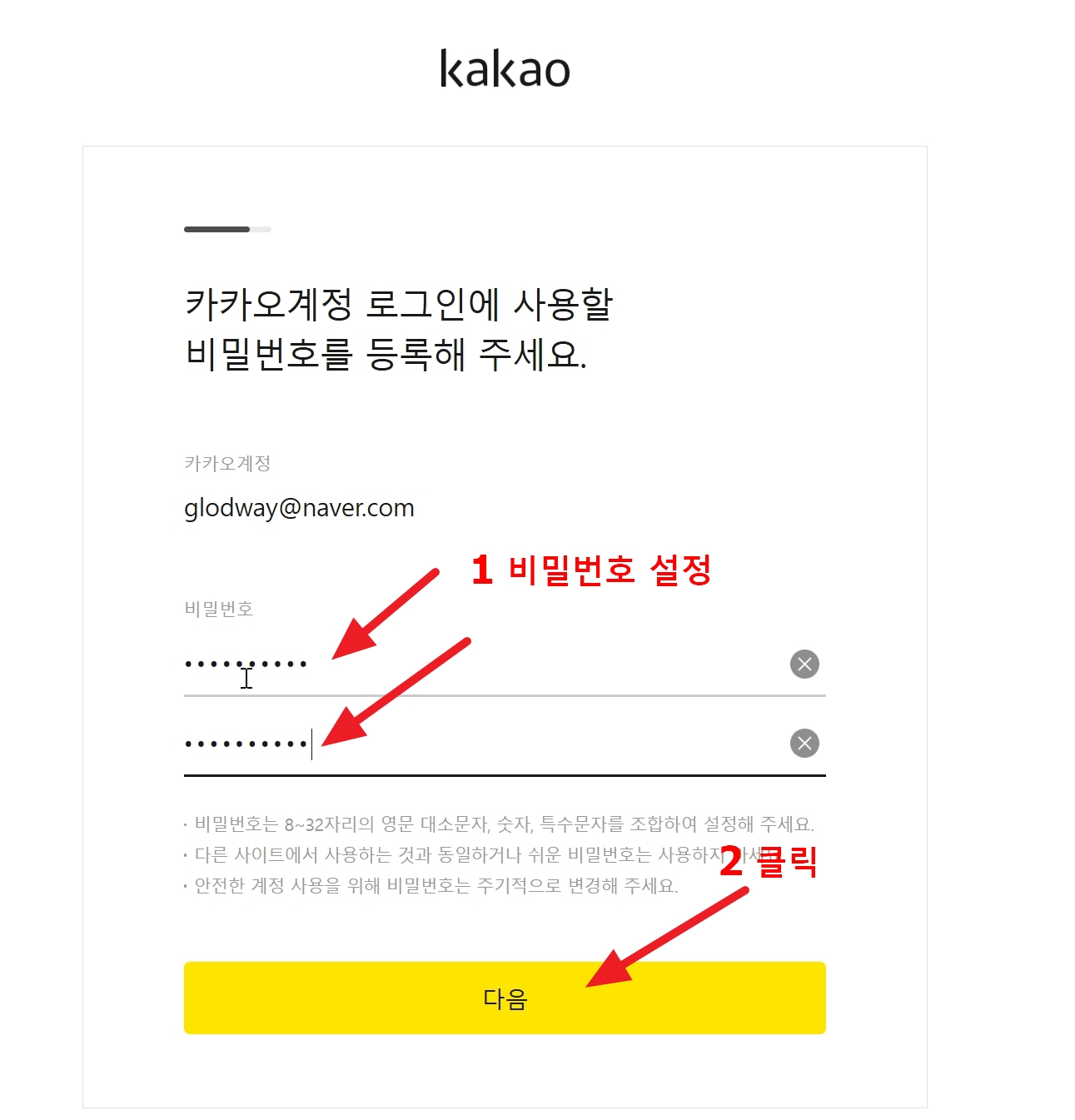 비밀번호는 두 번 입력하고, 다음을 클릭합니다.