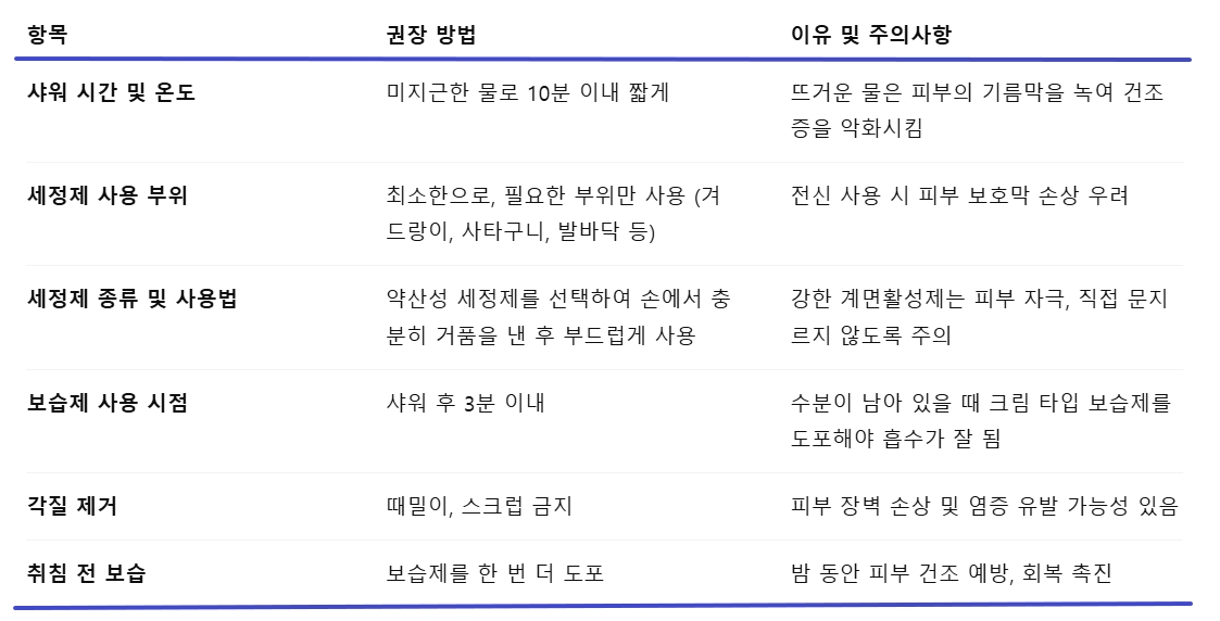 🌸 5. 피부과 의사가 권하는 샤워·보습 루틴