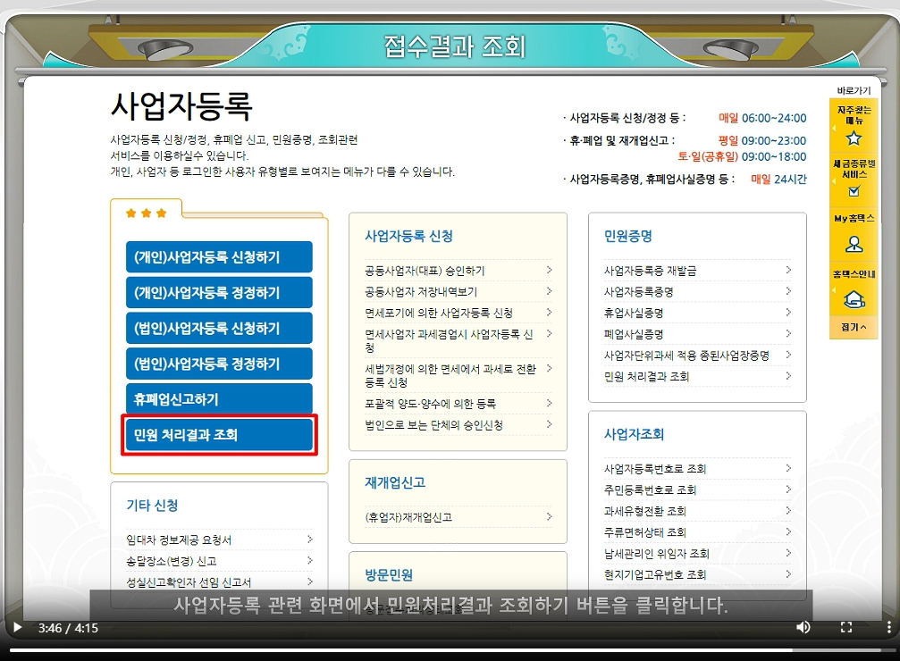 사업자등록을 위해 국세청에서 제공하는 도영상도 있어 공유드립니다. 이 동영상을 클릭하시어 신청하는 방법을 확인하셔도 됩니다.