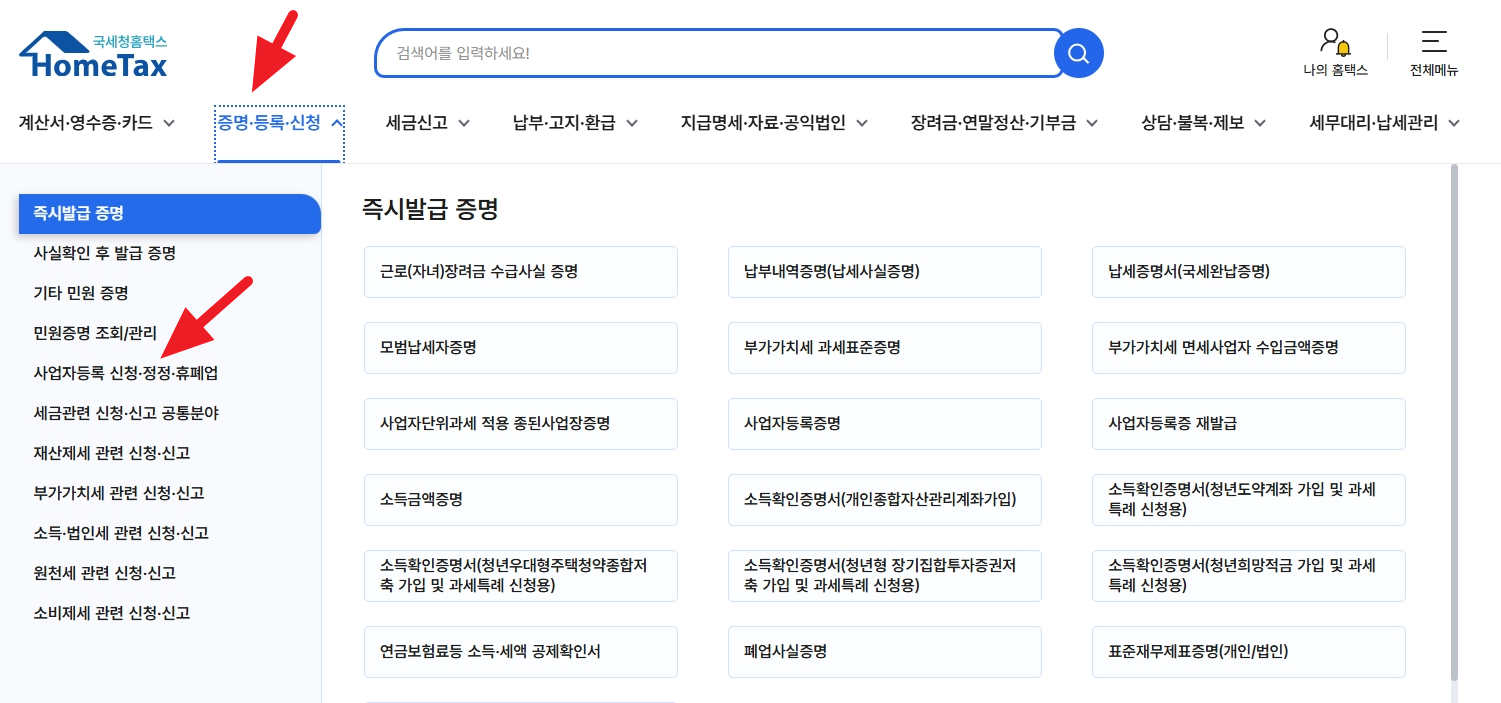 홈텍스에서 사업자 등록증 쉽게 신청하는 방법