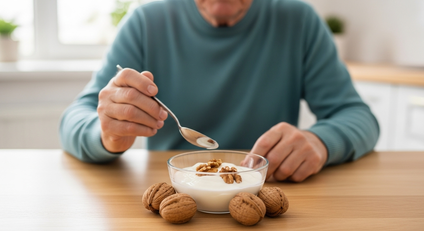 이 문제를 해결한 김영희 님의 비결은 거창한 치료가 아니었습니다. 그녀는 단지 **점심 식사 15분 전, 무가당 그릭 요거트 한 컵과 호두 3~4알**을 먹었을 뿐입니다. 이 간단한 루틴은 놀라운 변화를 만들어 냈습니다. 요거트의 단백질과 호두의 불포화지방은 식사 전에 **‘탄수화물 흡수 방어막’**을 형성해 혈당의 급격한 상승을 완화합니다. 또한 단백질과 지방이 먼저 소화되며 **인크레틴(Incretin)** 호르몬을 자극해 췌장이 인슐린을 안정적으로 분비할 준비를 하게 합니다. 결과적으로 혈당 상승 곡선이 완만해지고, 식후 졸림이나 무기력증이 사라지게 됩니다. 이것이 바로 “식전 15분 방탄막 전략”의 핵심입니다.