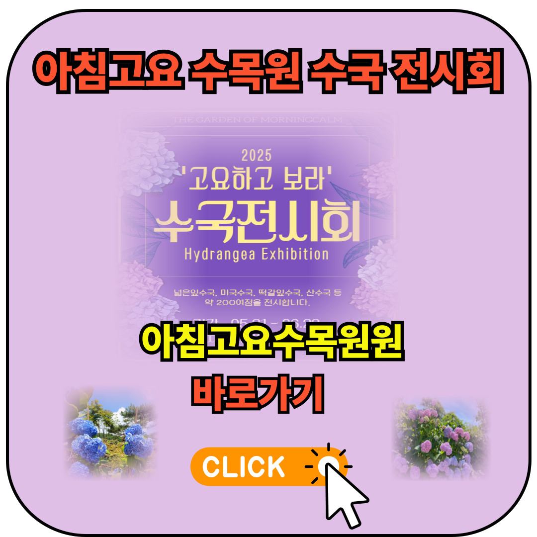 그렇다면 매년 여름 수많은 사람들이 찾는, ‘2025 아침고요수목원 수국 전시회’를 놓치지 마세요!