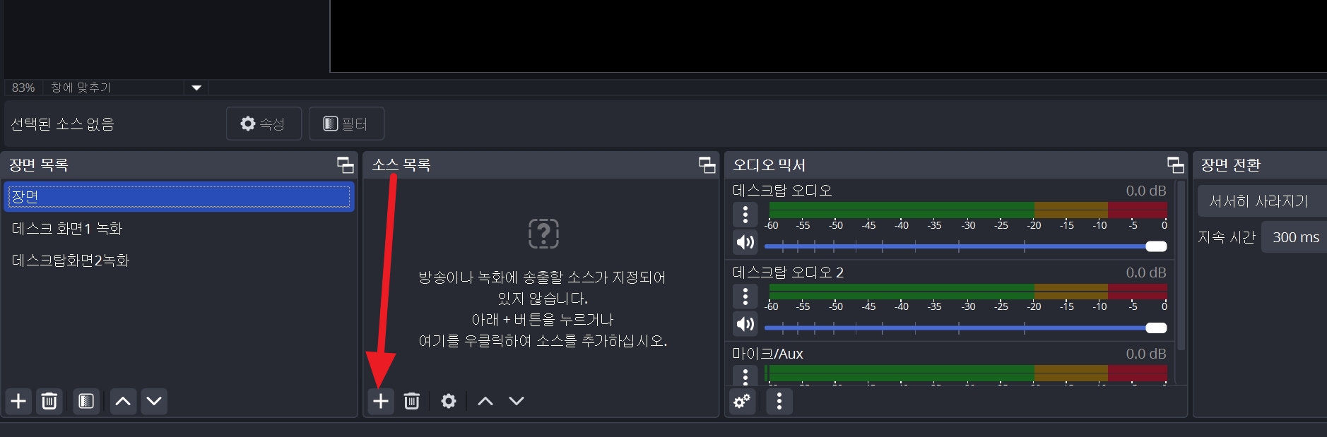 -장면목록과 마찬가지로 + 버튼을 누릅니다.