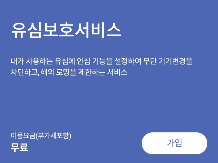 유심보호서비스는 완전 무료이며 가입만으로 내 유심 정보 보호가 가능합니다.